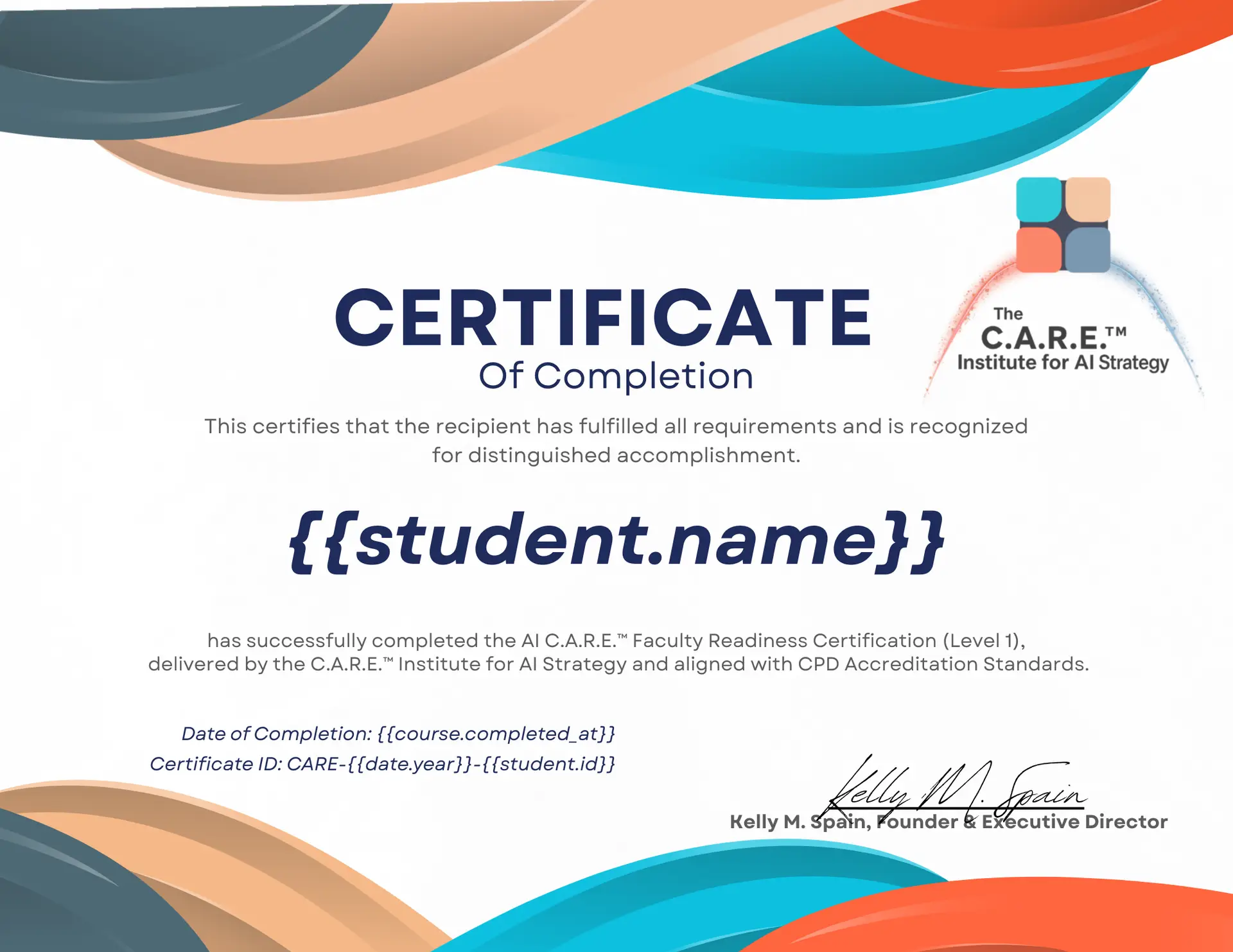 - Verification available through the C.A.R.E.™ Institute Portal.
